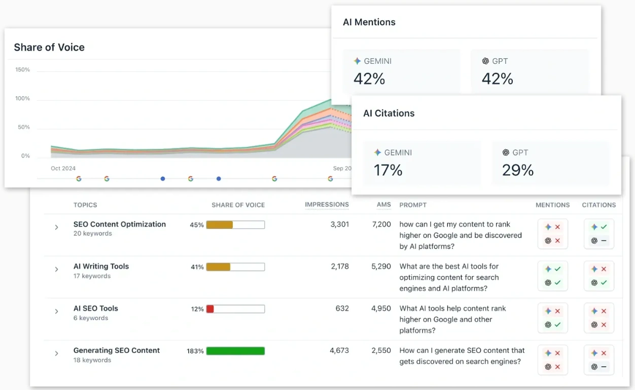 AI-driven tools are now essential for SEO success, optimizing not just for Google’s algorithm but also for how AI engines like ChatGPT, Perplexity, Claude, and Google AI Overviews understand and cite content. These tools help marketers stay visible as AI takes center stage in the search ecosystem.