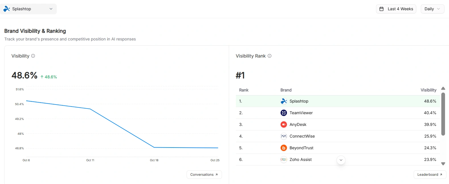 - AI-Specific Capabilities: Ensure the platform tracks visibility across AI engines like ChatGPT and Perplexity.