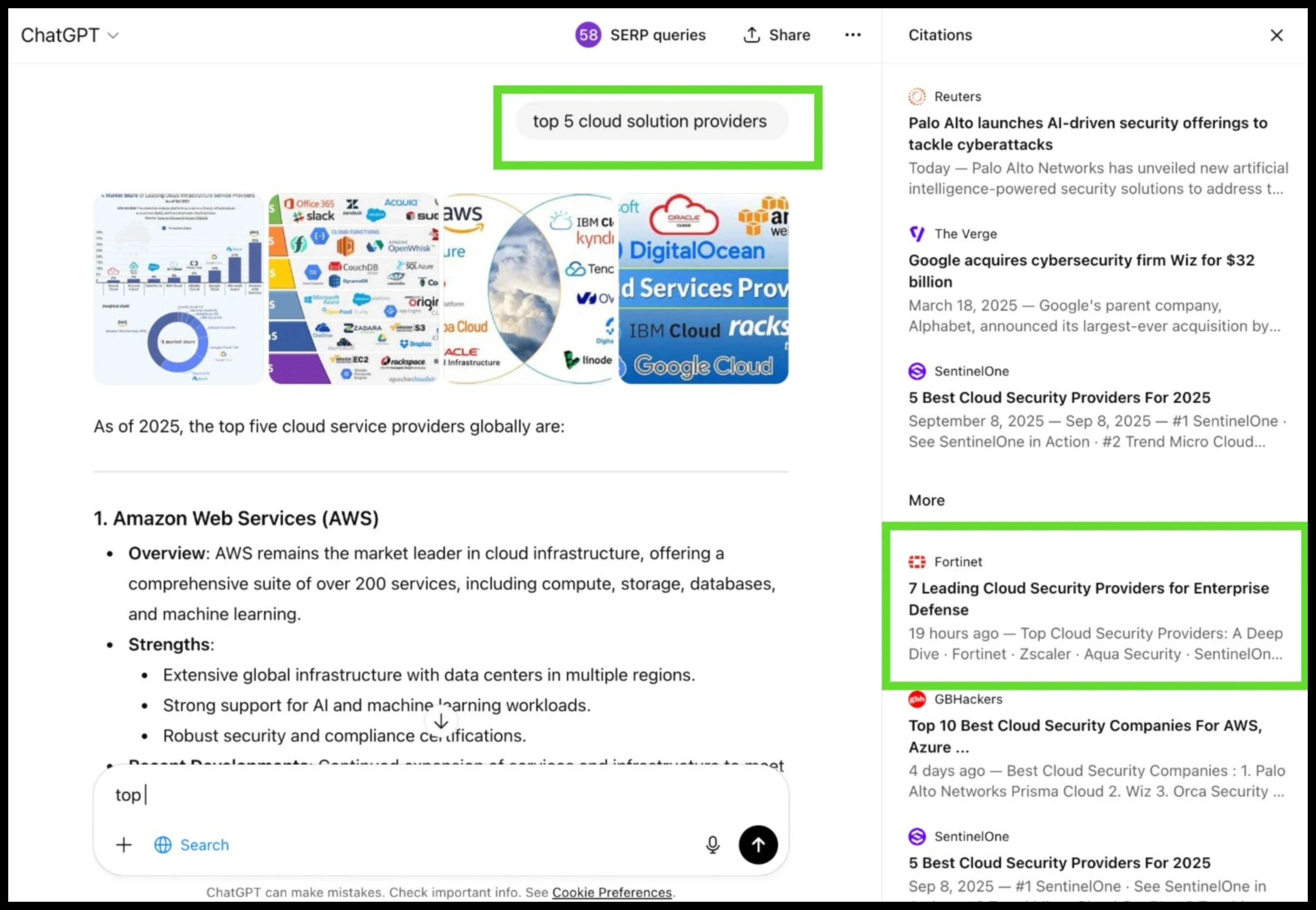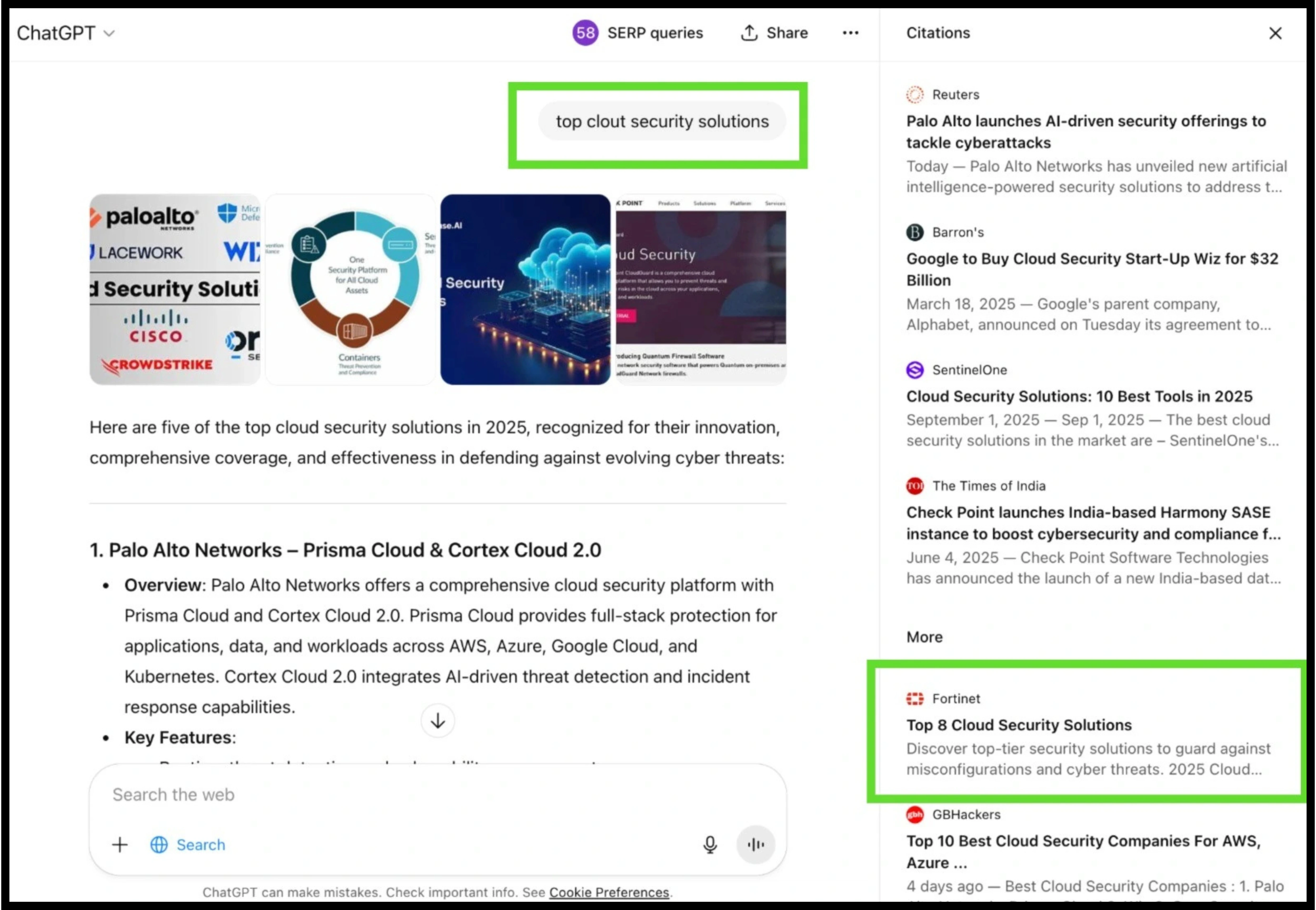 - Fortinet now cited in ChatGPT responses for cloud security queries